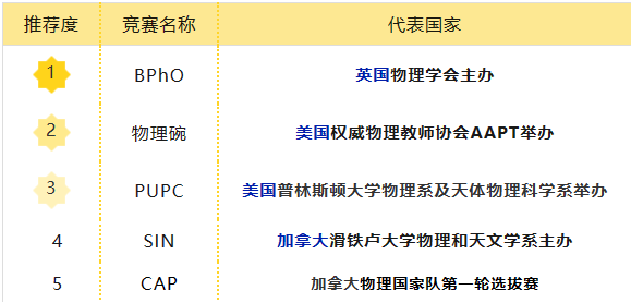 竞赛试题难度上:PUPC>BPhO>CAP>物理碗>SIN
