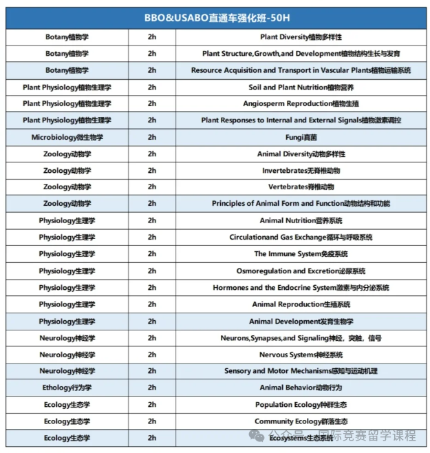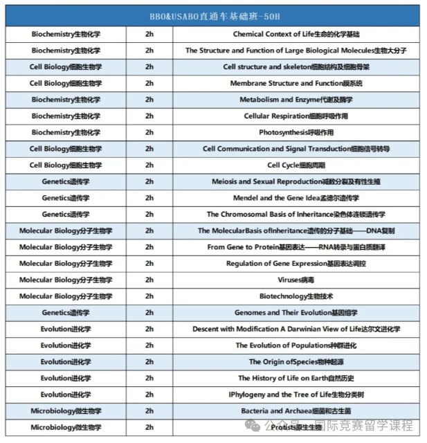 课程内容:BBO/USABO生物竞赛真题试卷专训,考点查漏补缺。