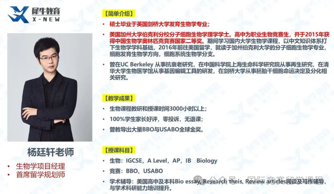 三、犀牛USABO竞赛培训课程师资